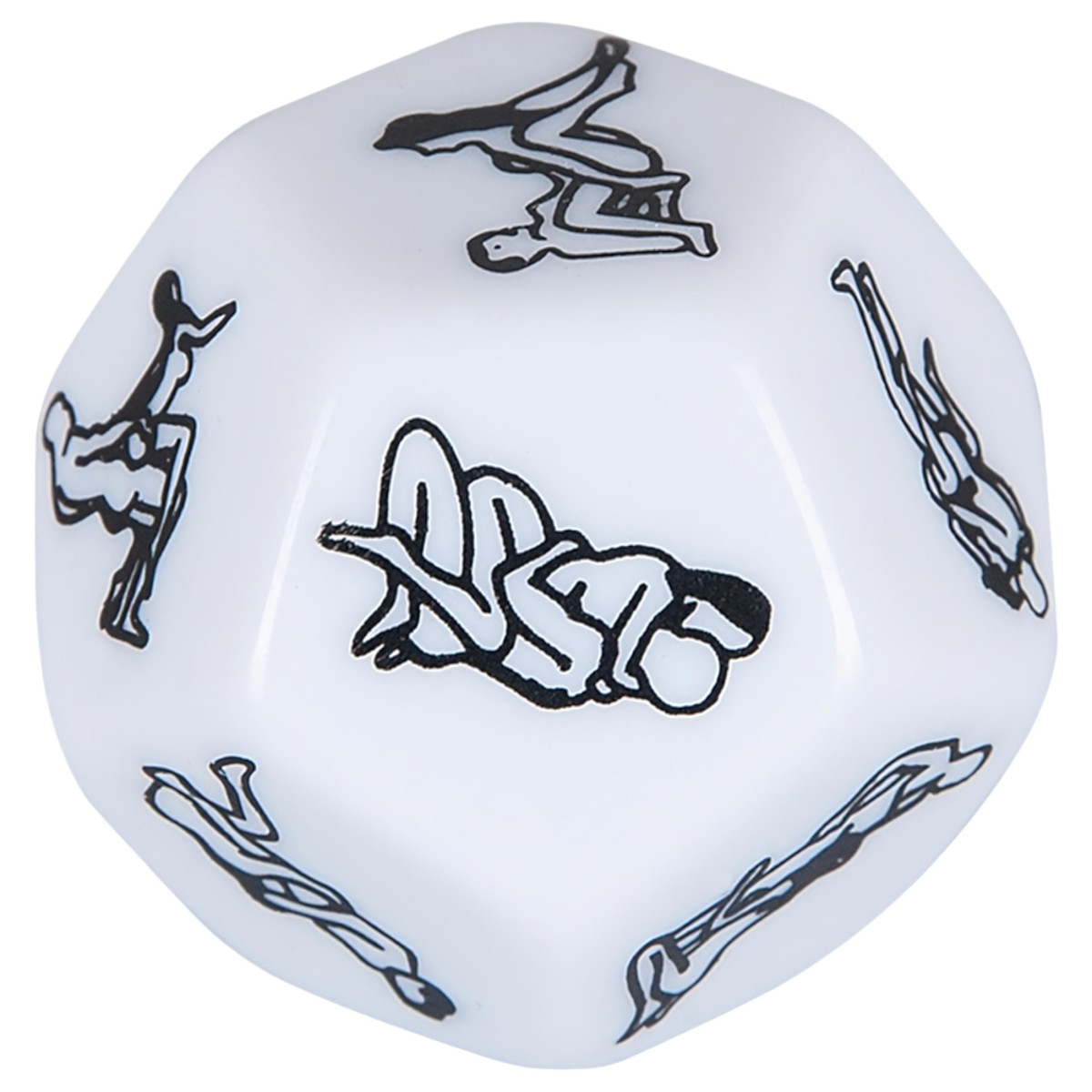 Játszatok egy kicsit és színesítsétek a szexet, ennek a különleges 12 oldalú kockának a segítségével, melynek minden oldalán a káma-szutra ihlette pózok vannak ábrázolva. Döntsön a kocka helyettetek. A kocka mérete 3 x 3 x 3cm. Fehér alapon, fekete rajzolt ábrákkal.