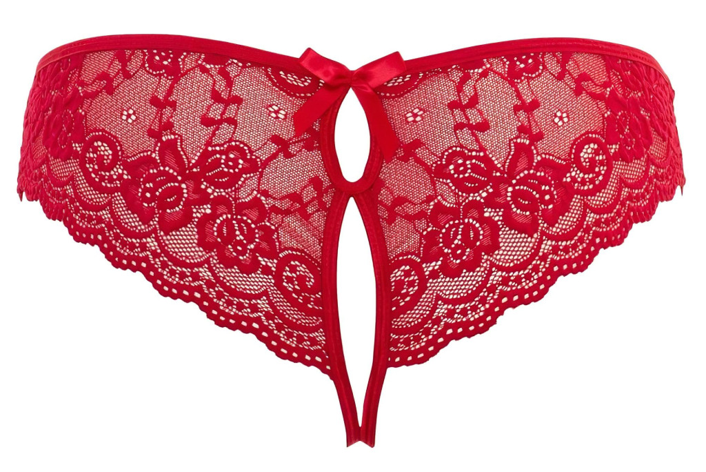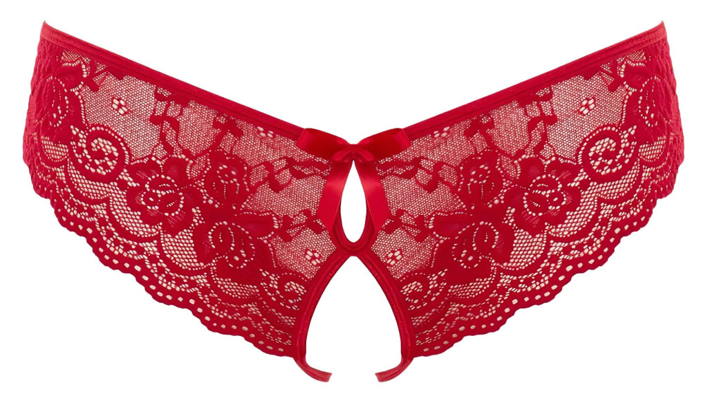 Puha, rugalmas csipkéből készülő női alsó, a szeméremnél és a popsinál is teljesen nyitott fazonban.