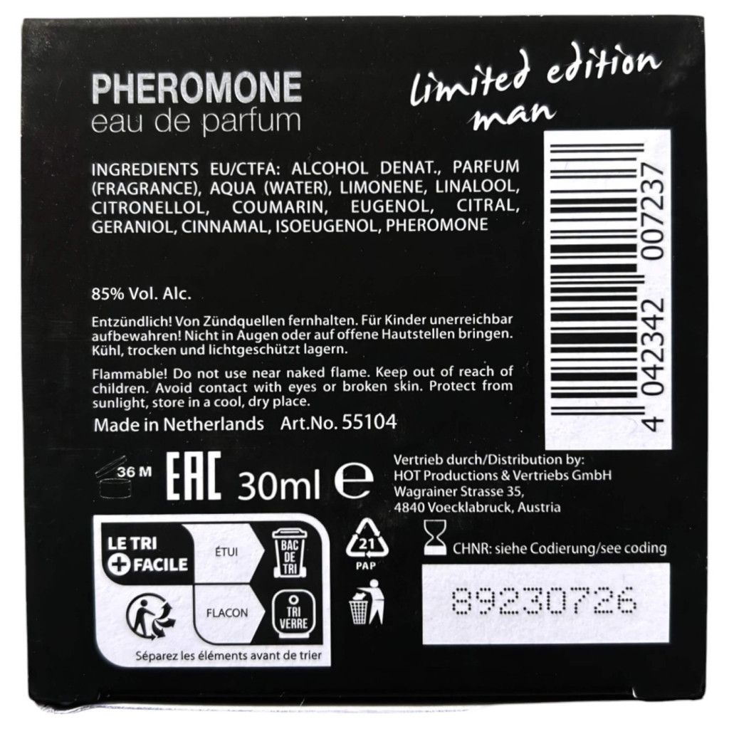 Alcohol Denat., Parfum (Fragrance), Aqua (Water), Limonene, Linalool, Citronellol, Coumarin, Eugenol, Citral, Geraniol, Cinnamal, Isoeugenol, Pheromone