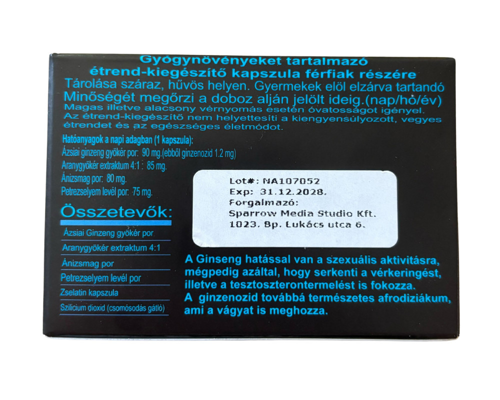 Alkalmi, vény nélkül kapható étrend-kiegészítő, amely természetes összetevőivel segíti a férfiakat a magabiztos, hosszan tartó merevedés elérésében – gyors hatással, akár több meneten át.